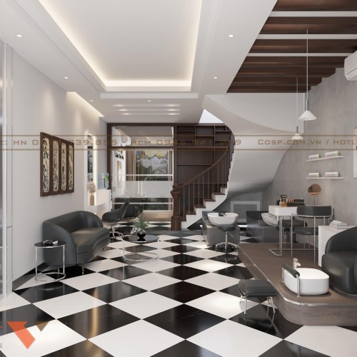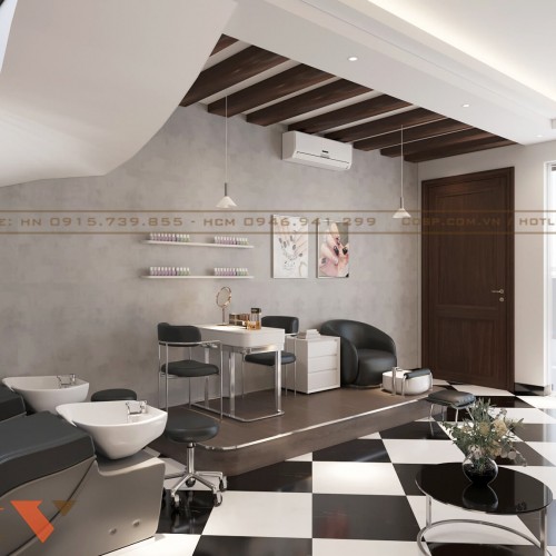 Ngoài ra khu vực làm móng tay, chân, gội đầu cũng được bố trí trong không gian này. Sự phân chia chức năng hài hòa, vừa có sự gắn kết vừa tăng sự riêng tư đảm bảo phục vụ khách hàng chu đáo.