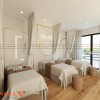 Không gian chăm sóc dịch vụ spa được thiết kế với tông màu chủ đạo là trắng kem, cùng màu nâu nhạt tự nhiên ấn tượng. Trần nhà màu trắng bố trí hệ thống đèn âm trần nhỏ gọn, cung cấp ánh sáng dịu nhẹ với không khí thư giãn lý tưởng.