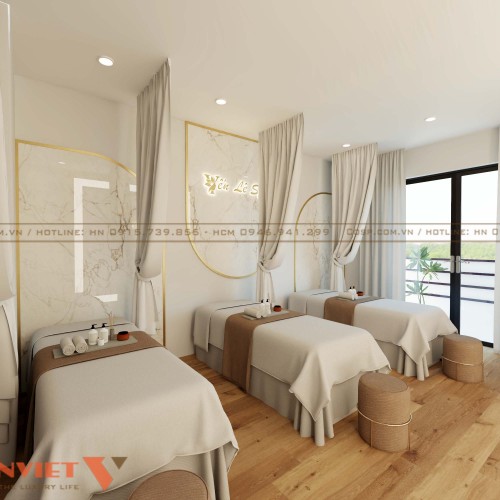 Spa Yến Lê là một không gian thư giãn đẳng cấp với thiết kế nội thất tinh tế đáp ứng xu hướng thời thượng. Trong đó điểm nhấn nổi bật trong spa chính là khu vực dịch vụ có 3 giường chức năng để khách hàng tận hưởng các liệu trình chăm sóc thoải mái. Hãy cùng khám phá những điểm đặc biệt trong thiết kế spa Yến Lê do PenViet triển khai dưới đây.