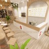 Nhằm mang đến cho khách hàng một không gian gần gũi, thân thiện. Penviet sử dụng gỗ Melamine cho thi công vách tường. Thiết kế này vừa đơn giản nhưng độc đáo này mang đến hiệu quả cao trong décor cửa tiệm khi kết hợp thêm với cây xanh khiên không gian trở nên thông thoáng.