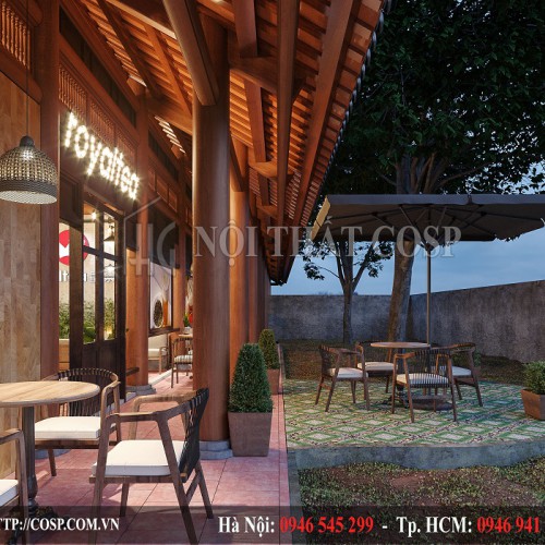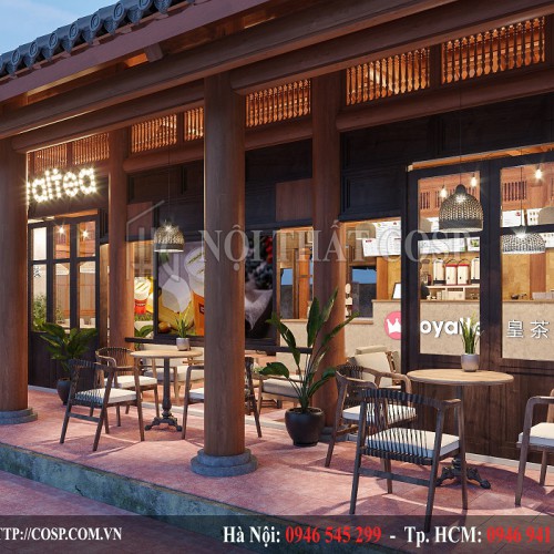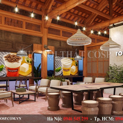 Vốn là một dự án được cải tạo từ nhà hàng theo phong cách nhà gỗ truyền thống Việt Nam nên Royal Tea Từ Sơn – Bắc Ninh có một không gian kiến trúc khá cổ điển. Tuy vậy với khả năng sáng tạo và khéo léo của kiến trúc sư (KTS) tại COSP, một số chất liệu mang thương hiệu “Royal Tea” đã được sử dụng và phối hợp hài hòa với các đường nét vốn có của kiến trúc.