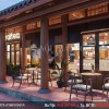 Khu vực phía ngoài sân cũng vô cùng tráng lệ với hệ thống chiếu sáng chất lượng cùng biển hiệu bắt mắt tạo nên một sự kết hợp độc đáo giữa phong cách truyền thống và sự sang trọng của Royal Tea.