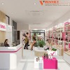 Cửa tiệm với diện tích 60m2 được chúng tôi tư vấn thiết kế theo phong cách hiện đại, sử dụng màu trắng và nội thất gỗ làm chủ đạo. Penviet sử dụng gam màu hồng làm điểm nhấn cho không gian không chỉ bởi nó tạo nên sự nhất quán với nhận diện thương hiệu mà còn bởi nó thể hiện được sự ngọt ngào, dễ thương của các quý cô.
