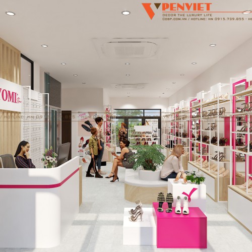 Hướng đến đối tượng khách hàng là phái đẹp, do đó, Penviet muốn tái hiện những nét kiêu kỳ nhưng cũng đầy ngọt ngào trong mẫu thiết kế cửa hàng giày Yomi. Cùng khám phá ngay không gian cửa tiệm này để thấy được sự độc đáo, thú vị nhé!