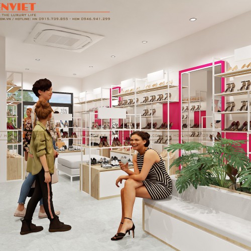 Sự phối hợp màu sắc một cách ăn ý trong mẫu thiết kế cửa hàng giày này cũng mang tới sự thời thượng cho không gian cũng như nét tiểu thư, kiêu kỳ của phái đẹp.