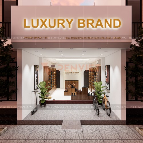 Hình ảnh thi công mặt tiền shop giày Luxury Brand