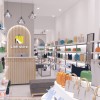 Với diện tích 40m2 là diện tích tương đối nhỏ dành cho shop kinh doanh. Kiến trúc sư Penviet đã thiết kế với tiêu chí hạn chế tối đa việc không gian bức bối, chật chội của shop. Chính vì vậy, tông màu trắng chính là lựa chọn tối ưu nhất cho shop (cả biển bảng và nội thất shop). Đây không chỉ là tone màu không chỉ mang lại vẻ đẹp trẻ trung, hiện đại mà nó còn giúp không gian thông thoáng, tạo hiệu ứng thị giác giúp shop nhìn rộng hơn thực tế.