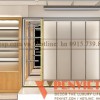 Tủ trưng bày sản phẩm được làm từ gỗ Melamine An Cường với tone màu gỗ tự nhiên kết hợp với các đợt tủ được phun sơn bệt màu xám có led đi quanh khung tủ và kết hợp để được sản phẩm sáng hơn KTS đã thiết kế thêm gương hai bên hậu của tủ trưng bày này.