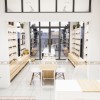 Để tiết kiệm cho không gian và lối đi lại, KTS Hà Mạnh Khánh đã bố trí hệ tủ kệ trưng bày sát tường và tủ gương sát tường ở hai bên của cửa hàng. Loại tủ kệ sát tường được lựa chọn là loại tủ được làm từ gỗ MDF phủ melamine và được chia thành nhiều tầng trưng bày sản phẩm vô cùng tiện ích và hiện đại. Còn loại tủ kết hợp gương được bố trí 2 bên nhà kẹp chính giữa hệ tủ trưng bày sát tường. Tủ này cũng được làm từ gỗ MDF phủ melamine 17mm, có gương dày 5ly, mài xiết cạnh. Để tăng thêm tính thẩm mỹ, kệ và tủ được lắp đặt với kích thước và kiểu dáng khác nhau.