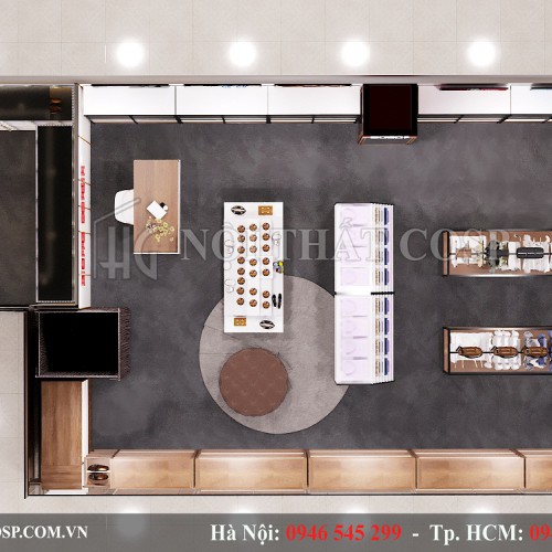 Bục trưng bày cũng được làm từ chất liệu gỗ MDF chắc chắn. Toàn bộ hệ thống nội thất đều được bố trí gọn gàng và logic, tối ưu hóa tối đa không gian, tạo lối đi thuận tiện cho khách hàng có thể dễ dàng quan sát sản phẩm.