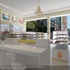 Bên cạnh chiếc bàn tiếp khách chính là quầy tiếp tân. Quầy được thiết kế tinh tế và sang trọng với chi tiết đơn giản, hiện đại được bố trí chính giữa phòng giúp nhân viên bán hàng có một cái nhìn rộng rãi và bao quát nhất.