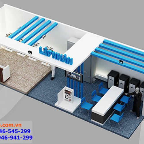 Mời các bạn tham khảo mẫu thiết kế số 1 của COsp cho gian hàng của Cty Lập Nhân. Mẫu thiết kế gian hàng này cũng đẹp không kém mẫu số 2.