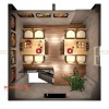 Mẫu thiết kế quán ăn KATSU đơn giản với khu vực tiếp đón phục vụ khách và nhà bếp liên thông. Điểm nhấn là các chi tiết decor đèn lồng ấm áp cùng tranh trang trí tạo nét độc đáo.