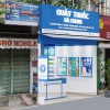 Sự phối hợp hài hòa về màu sắc cũng làm tôn lên bộ chữ tên cửa hàng và các thông tin liên quan bằng Mica. Sắc trắng cũng đóng vai trò giúp cân bằng và tạo điểm nhấn tinh tế cho mặt tiền nhà thuốc Hà Chung.