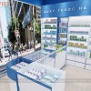 Bố trí không gian khoa học kết hợp với sử dụng những mẫu tủ kệ đơn giản góp phần không nhỏ trong việc khắc phục những tồn tại của mặt bằng trong mẫu thiết kế nhà thuốc Hà Chung.