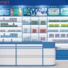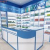 Để thiết kế nội thất nhà thuốc Hà Chung thêm phần trẻ trung, sinh động, chúng tôi sử dụng thêm các tranh backlist gắn tường và treo trên trán tủ. Sự kế hợp màu sắc khéo léo của những chi tiết thiết kế khiến cho không gian của cửa hàng thêm phần thu hút mà vẫn đảm bảo được tính chuyên nghiệp và sự hiện đại.