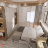 Mẫu tủ quần áo của phòng ngủ có kiểu dáng hiện đại, kích thước lớn phù hợp không gian cũng như đáp ứng được nhu cầu sử dụng của chủ đầu tư. Tủ có các ngăn nhỏ phía trước kết hợp đèn LED chiếu sáng để trưng bày các đồ kỷ niệm hay những quyển sách quý giá của gia chủ.
