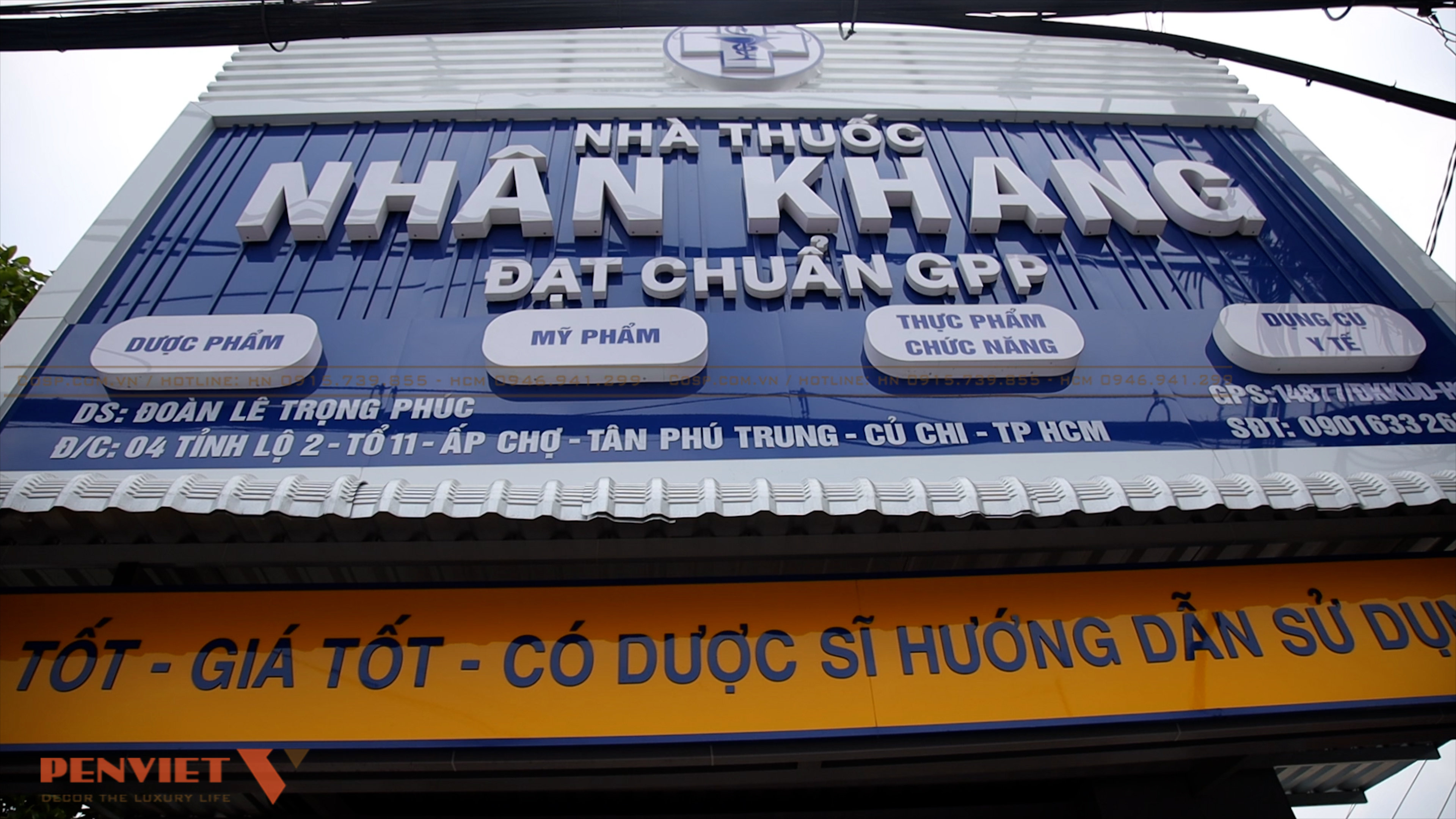 Bên trên biển bảng có đầy đủ thông tin giấy chứng nhận, giấy phép của nhà thuốc tăng sự an tâm cho khách hàng. Sự minh bạch trong cung cấp thông tin của chủ nhà thuốc tăng sự uy tín và đáng tin cậy cho người mua.