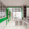 Khi thiết kế cửa hàng thuốc này, chúng tôi nghĩ ngay đến sử dụng 2 gam màu chủ đạo là trắng và xanh lá để thiết kế không gian. Sở dĩ chọn 2 sắc màu này là vì đây đều là các sắc màu đặc trưng trong ngành dược phẩm. Bên cạnh đó, nó tạo cảm giác về một không gian có tính sạch sẽ cao, không bị nặng nề cho người đến mua hàng.