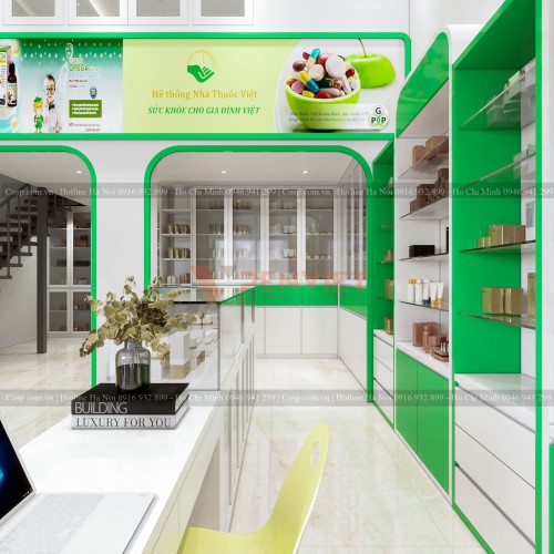 Thiết kế nội thất cho hiệu thuốc Gtue