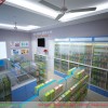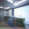 Tiếp đó, vì cửa hàng sở hữu một mặt bằng kinh doanh với mặt tiền khá lớn mà chiều dài lại nhỏ nên chúng tôi đã quyết định thiết kế không gian theo dạng chữ L. Tức là không gian trưng bày sẽ được bố trí với các tủ kê xung quanh 2 mảng tường cạnh nhau tạo thành thể thống nhất theo dạng chữ L. Những chiếc tủ này sẽ được áp sát tường, nhường chỗ cho khu vực khách mua hàng ở phía trước. Từ đó mà khi đặt chân vào cửa hàng, người mua có thể nhìn bao quát được không gian trưng bày thuốc tốt hơn.
