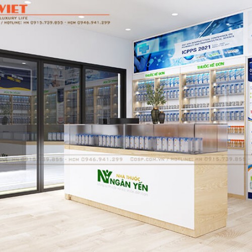 Thiết kế nhà thuốc đạt chuẩn GPP ngoài việc đảm bảo không gian khô ráo, thoáng mát, diện tích tối thiểu 10m2 còn yêu cầu có các khu vực tư vấn và ra lẻ thuốc không có bao bì. Cách bài trí quầy kệ tại hiệu thuốc Ngân Yến cho thấy các kiến trúc sư Penviet đã nắm bắt và tuân thủ triệt để các quy định của Chính Phủ và Bộ Y Tế quy định tại thông tư số 02/2018/TT-BYT ngày 22/01/2018 của Bộ trưởng Bộ Y tế về quy định về Thực hành tốt cơ sở bán lẻ thuốc.
