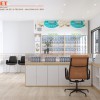 Mẫu tủ chữ L không chỉ giúp phân chia không gian mà còn tạo thành khu vực tư vấn cho khách hàng, giúp đảm bảo công năng của nhà thuốc.