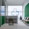 Lựa chọn cửa cho nhà thuốc kiến trúc sư lựa chọn kính trắng để có thể làm nổi bật cho không gian trong nhà thuốc. Hơn nữa lựa chọn này sẽ mang lại cho nhà thuốc sự thông thoáng hơn, rộng hơn so với diện tích thực
