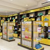 Có một điểm khác biệt trong các kệ trưng bày sát tường tại tầng 1 so với tầng trệt đó chính là chiếc kệ zích zắt. Chiếc kệ này vẫn để trưng bày các sản phẩm thuốc thôi nhưng được thiết kế phá cách để tạo điểm nhấn cho không gian.