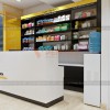 Khi thiết kế cửa hàng thuốc này, KTS Penviet đã sử dụng màu trắng làm tông màu chính cho tường và quầy thu ngân, kèm một số mảng màu cho tủ. Tông màu đen làm màu chính cho các hệ tủ nhằm giúp không gian trở nên mạnh mẽ và cứng cáp hơn. Để không bị nhàm chán bởi 2 màu trắng đen, KTS đã kết hợp thêm tông màu vàng làm điểm nhấn cho các sản phẩm nội thất, tạo nên không gian sinh động, phá cách, không kém phần mạnh mẽ.