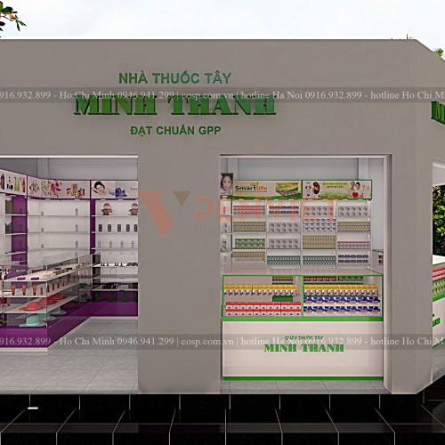 Thiết kế mặt tiền nhà thuốc và mỹ phẩm Minh Thanh