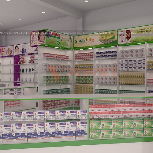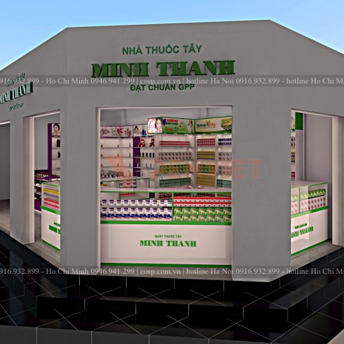 Thiết kế nội thất nhà thuốc và mỹ phẩm Minh Thanh