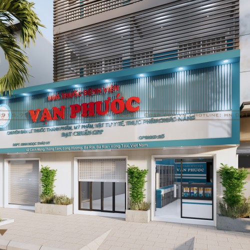 Khu vực mặt tiền và nhà thuốc của bệnh viện Vạn Phước được setup lại tạo diện mạo cực mới mẻ. Hơn nữa, cách bố trí này cũng mang đến cho bệnh viện sự chuyên nghiệp, đáp ứng xu thế phát triển cạnh tranh hiện nay. Hệ thống biển bảng có kích thước lớn, làm từ khung sắt phủ Alu bền bỉ với độ bền lâu dài khi sử dụng ngoài trời. Với 2 gam màu xanh và đỏ chủ đạo cho hệ biển bảng, đồng điệu với màu sắc thương hiệu của bệnh viện.