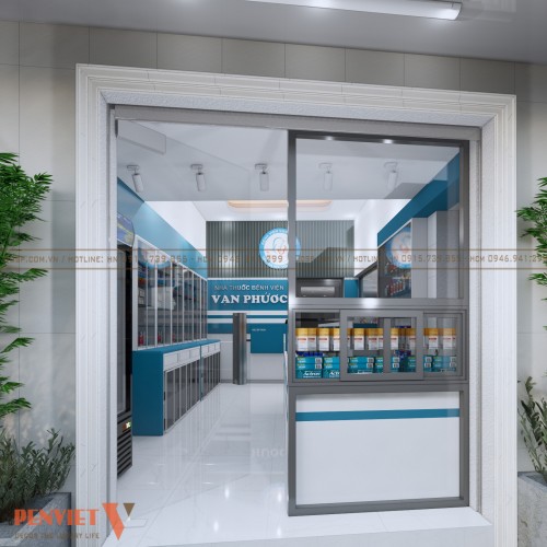 Phương án thiết kế nội thất nhà thuốc bệnh viện Vạn Phước tại Vũng Tàu đáp ứng các tiêu chuẩn của Bộ Y Tế đưa ra. Sự chuyên nghiệp trong từng cách setup không gian giúp bệnh viện khẳng định thêm vị thế thương hiệu trên thị trường. Cùng PenViet điểm qua những nét độc đáo của mẫu trang trí nội thất nhà thuốc này dưới đây.