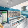 PenViet sử dụng hệ cửa kính cường lực cho khu vực ra vào nhà thuốc mang vẻ đẹp hiện đại, chuyên nghiệp. Cửa kính trong suốt giúp nhân viên bên trong dễ dàng nhìn thấy khách hàng để tiếp đón chu đáo. Hơn nữa, kính cũng là giải pháp tối ưu mở rộng không gian cho nhà thuốc với diện tích chỉ 30m2.
