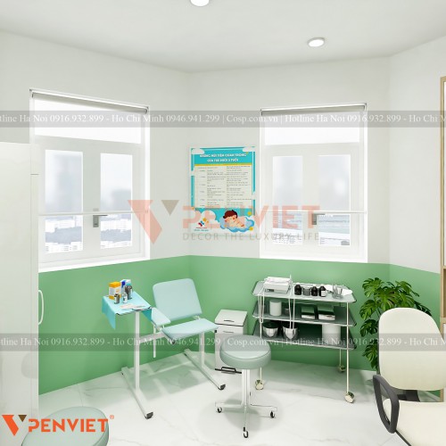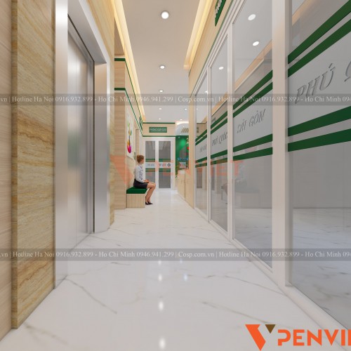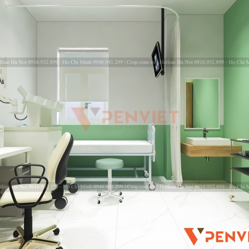 Penviet tạo ra một không gian sang trọng, vừa mang nét đặc trưng riêng của tòa nhà dịch vụ, vừa hài hòa với nhất quán với phong cách tổng thể của dự án thiết kế phòng khám.