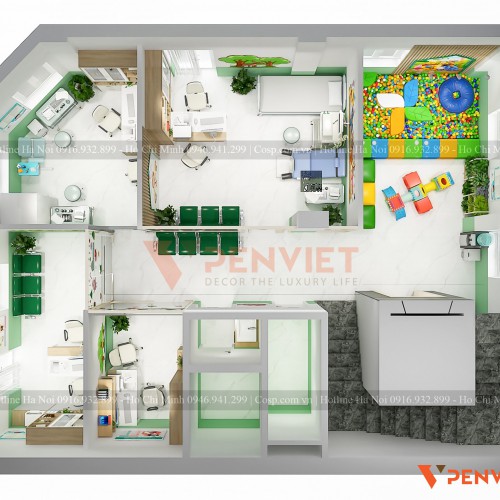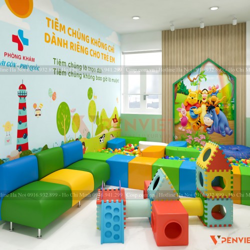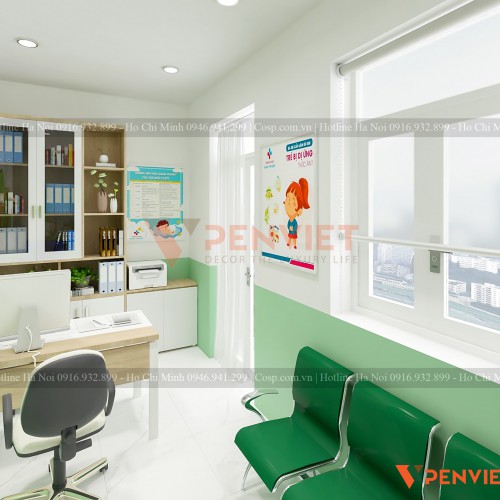 Được quy hoạch chuyên môn là chuyên khoa nhi, với đặc điểm bệnh nhân là các bạn nhỏ, Penviet muốn không gian tầng 2 mang nhiều màu sắc, không tạo cảm giác sợ hãi cho các bệnh nhân nhí.