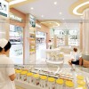 Các tủ trưng bày sử dụng kính cường lực vát cạnh còn đảm nhiệm thêm chức năng phân chia không gian hiệu quả. Với chiều cao phù hợp, hệ thống tủ này tạo ra không gian mở cho từng khu vực, giữ được tổng thể thông thoáng, rộng rãi.