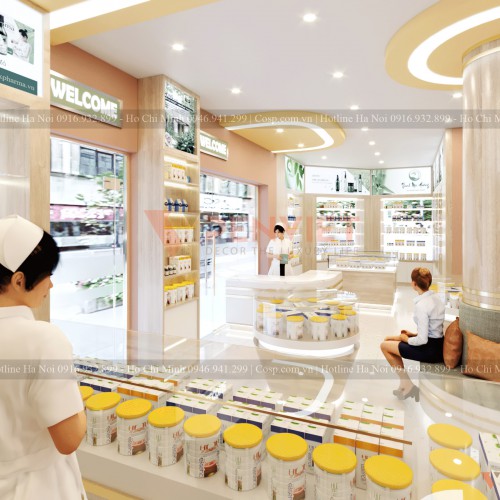 Thiết kế tủ kính đơn giản, logic trong cửa hàng thuốc