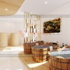 Bồn tắm sục và xông hơi toàn thân bằng gỗ tự nhiên 100% với đặc tính chống nước phù hợp với công năng sử dụng. Gỗ thông ghép thanh được lựa chọn cho thiết kế bồn tắm mang phong cách cổ điển, màu nâu đậm tạo nên điểm nhấn cho không gian spa.