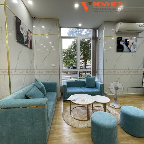 Khu vực này được bố trí sofa đệm bọc vải nỉ màu sắc trẻ trung phù hợp với định hướng phong cách thiết kế phòng khám. Và trên hết, nó mang tới sự thoải mái, dễ chịu cho khách hàng khi tới đây thăm khám.