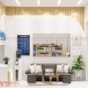 Chúng tôi cũng sử dụng linh hoạt các mẫu kệ trưng bày bằng gỗ MDF phủ Melamine để làm tăng không gian lưu trữ cho khu vực này, đồng thời khéo léo tạo thành vách ngăn, phân chia các phòng chức năng một cách tinh tế.