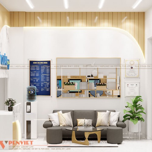 Qua khảo sát hiện trạng kết hợp với lắng nghe nguyện vọng của chủ đầu tư, Penviet đã tư vấn cho cách hàng phong cách hiện đại cho mẫu thiết kế phòng khám, sử dụng những gam màu tươi sáng cho không gian.