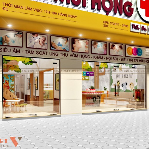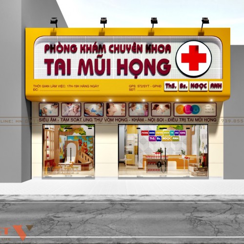 Hệ thống bảng biển quảng cáo của phòng khám chuyên khoa tai mũi họng Ngọc Anh vô cùng nổi bật. Với gam màu vàng tươi trẻ chủ đạo mang đến sự tươi mới, hiện đại. Bộ chữ tên thương hiệu “ phòng khám chuyên khoa tai mũi họng” bằng mica màu đỏ giúp khách hàng dễ nhận diện cho dù đi từ xa.
