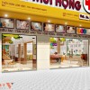 Quầy kệ trưng bày sản phẩm đặt giữa sảnh lễ tân