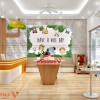 Phía diện tường sau ghế sofa có trang trí bức tranh với các loại động vật dễ thương, nhiều màu sắc. Hình ảnh sinh động tăng thêm sự thu hút cho các bạn nhỏ đến thăm khám. Các bạn sẽ xua tan được nỗi lo sợ khi khám bệnh để việc thăm khám dễ dàng hơn.