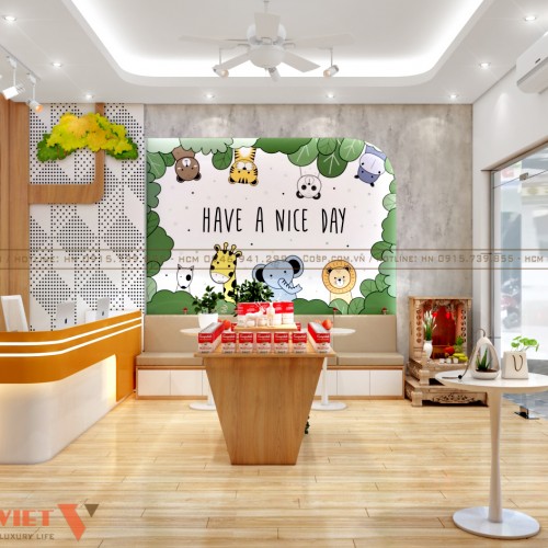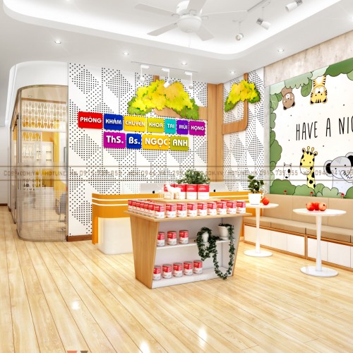 Đặc biệt là hệ cây trang trí làm từ chất liệu gỗ và các họa tiết đi kèm vô cùng ấn tượng. Tổng thể không gian thêm phần đẹp mắt hơn với các chi tiết decor xinh xắn này. Đây cũng là điều để tạo điểm nhấn giúp các bạn nhỏ thêm yêu thích phòng khám Ngọc Anh.