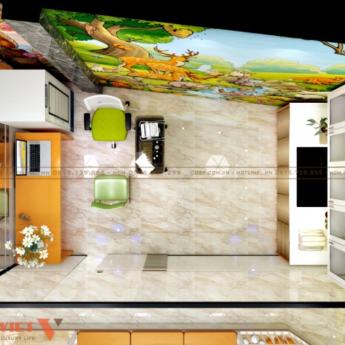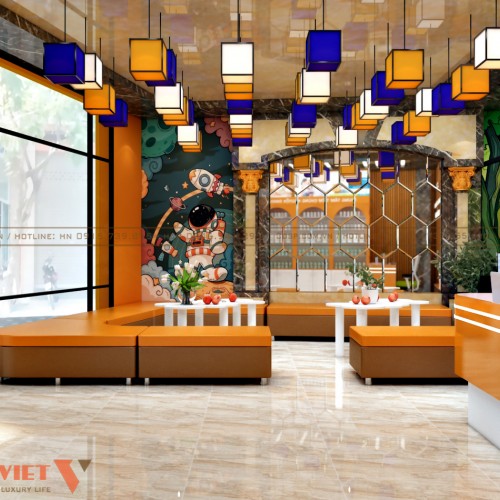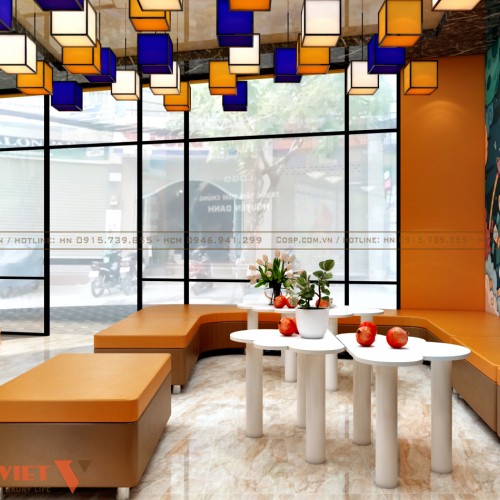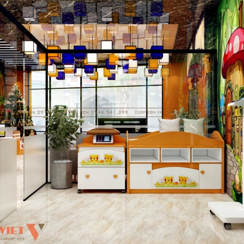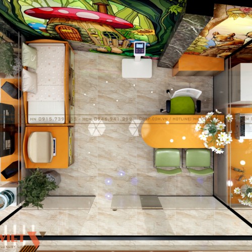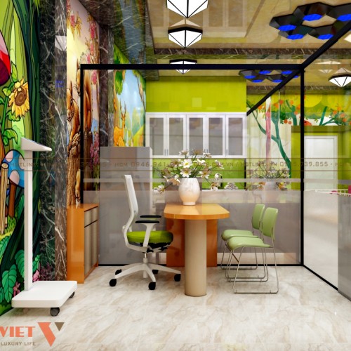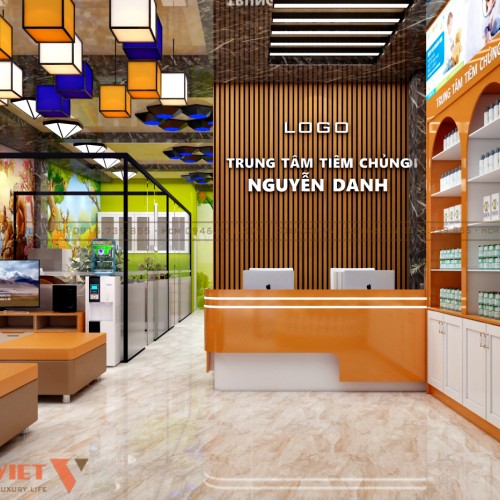 Thiết kế trung tâm tiêm chủng Nguyễn Danh với tổng diện tích 100m2 được chia thành các khu vực riêng biệt đáp ứng đủ công năng sử dụng. Với phong cách trang trí hiện đại, sử dụng các họa tiết dễ thương, ngộ nghĩnh thu hút các bạn nhỏ giúp giảm cảm giác lo lắng khi đến tiêm chủng.