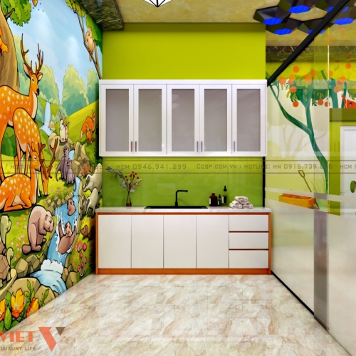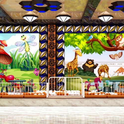 Phía bức tường được PenViet trang trí hình vẽ các loài động vật vui nhộn, sinh động. Bất cứ bạn nhỏ nào cũng cảm thấy thích thú với những họa tiết đáng yêu này.