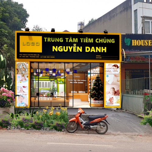 Biển hiệu có thiết kế tuy khá đơn giản nhưng rất tinh tế, thể hiện sự chuyên nghiệp của 1 trung tâm tiêm chủng. Quý khách sẽ dễ dàng nhận biết về thương hiệu tiêm chủng Nguyễn Danh trên con phố tấp nập các cửa hàng, quán xá khác nhau.